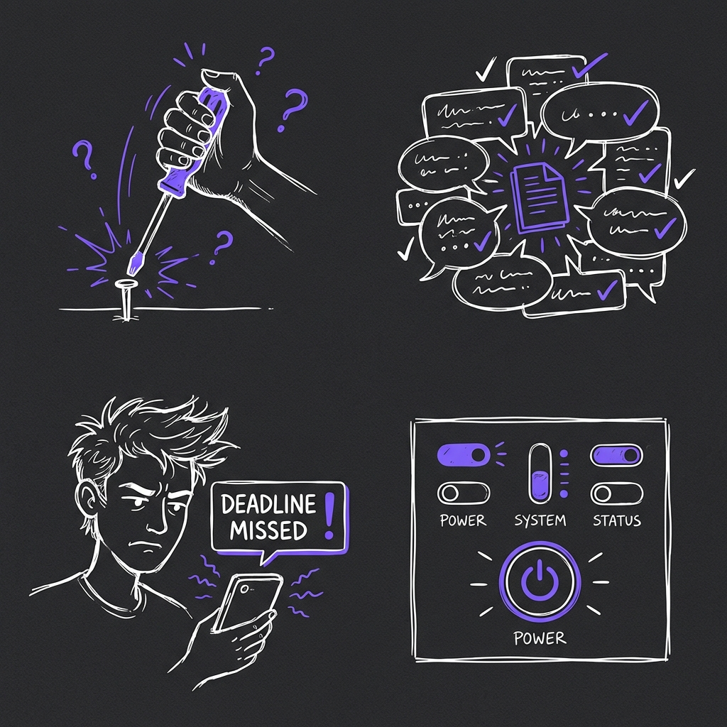 Buried tasks lead to missed deadlines. Every "ping" is a cognitive tax. When important project decisions are made in the middle of a 50-message thread, the "Accidental System" demands that someone manually transcribes that data into a real tool.
